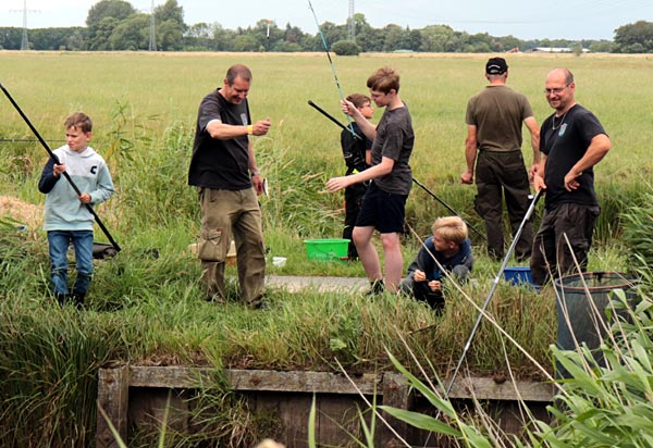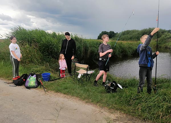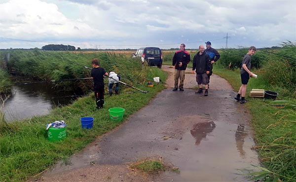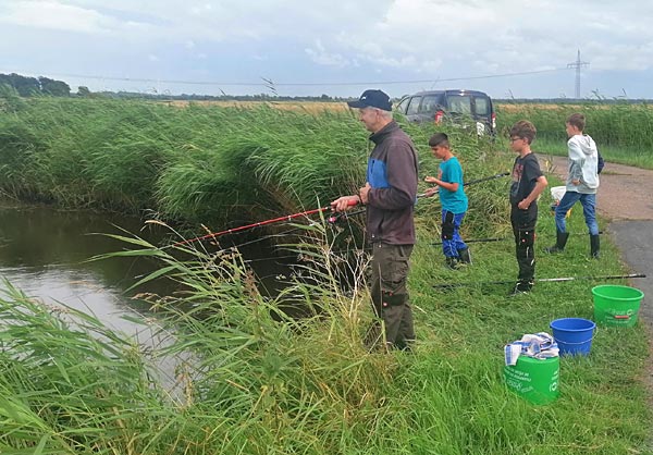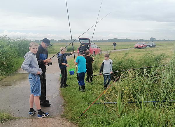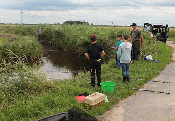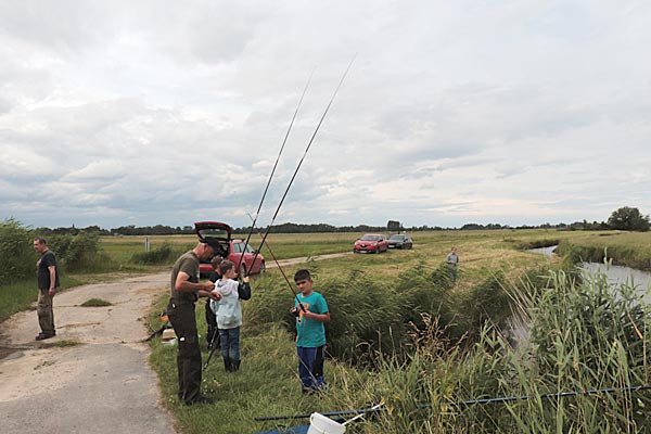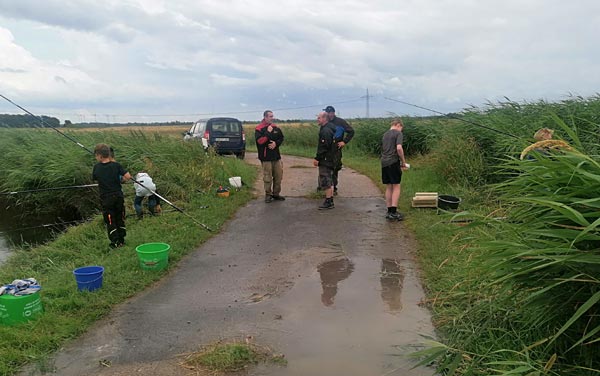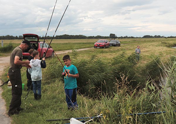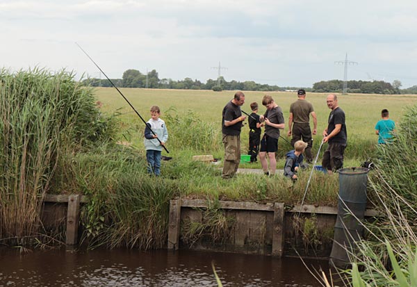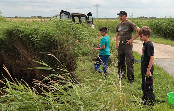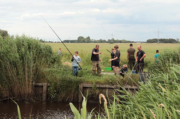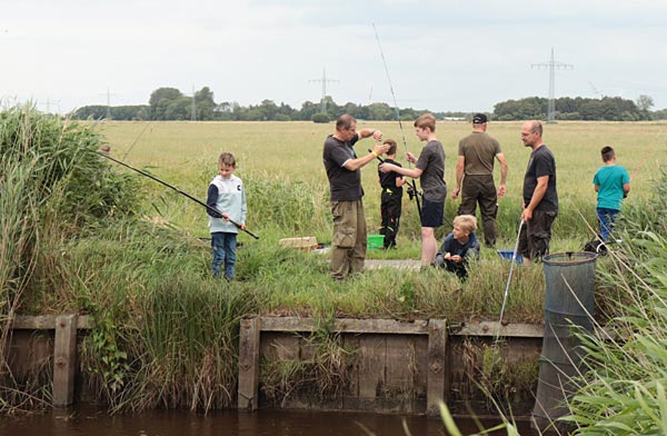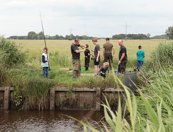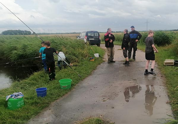 Nach dem Regen ging es richtig rund. Die Fische bissen, die Kinder wechselten ständig die Plätze auf der Suche nach Fisch.