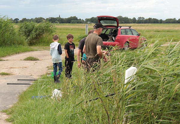 Von zunächst 7 angemeldeten Kindern kamen dann immerhin 6 - und die waren richtig gut vorbereitet und hatten ausnahmslos eigenes Angelgerät dabei. Die vom ASV bereitgestellten Ruten und etwas feineren Haken wurden trotzdem genutzt. Da es erstmal darum ging, überhaupt einen Fisch (oder besser mehrere) an den Haken zu bekommen, angelten wir lieber auf die Kleinen.