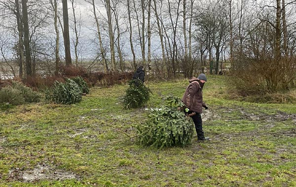 Dank der vielen Helfer waren wir diesmal schneller als geplant durch. Alle Bäumchen verarbeitet. Besser geht’s nicht - außer beim Wetter.