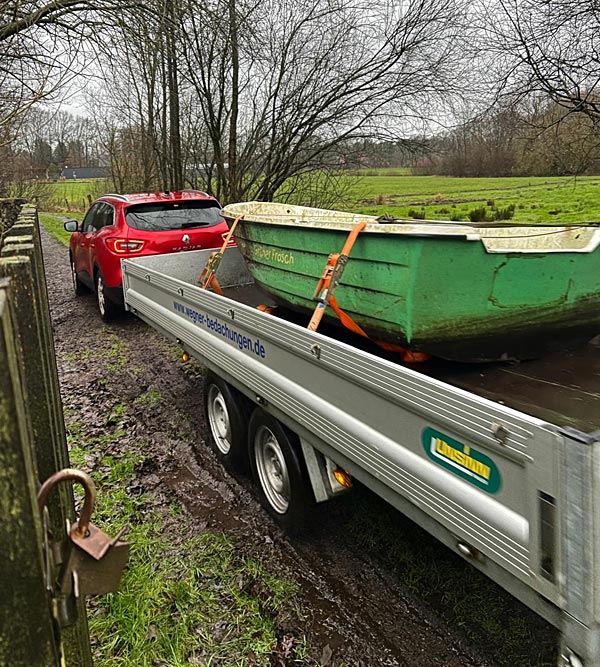Mit dem großen Anhänger (Danke Ulf) sieht das schon professioneller aus als im letzten Jahr und dank 4 starker Männer 🤣 war das Boot auch schnell aufgeladen.
