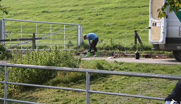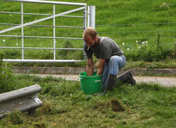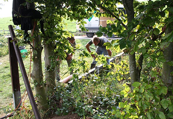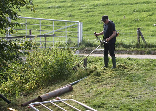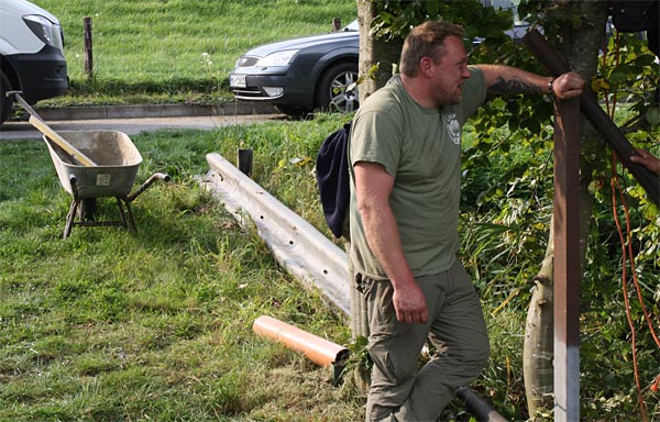 .. Bernd mäht die Träger für die Leitplanken frei ..