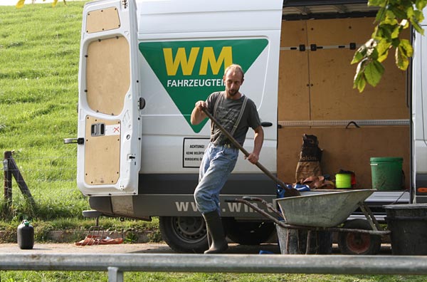 dazu müssen die Maschinen zurück, der Kleinlaster muß ausgeräumt und