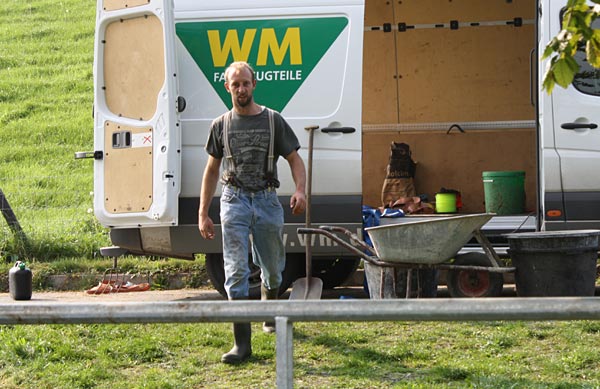 .. Cedric streicht schon mal den neuen Pfosten ..
