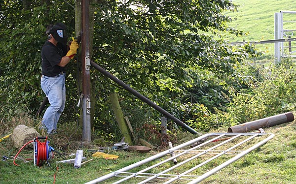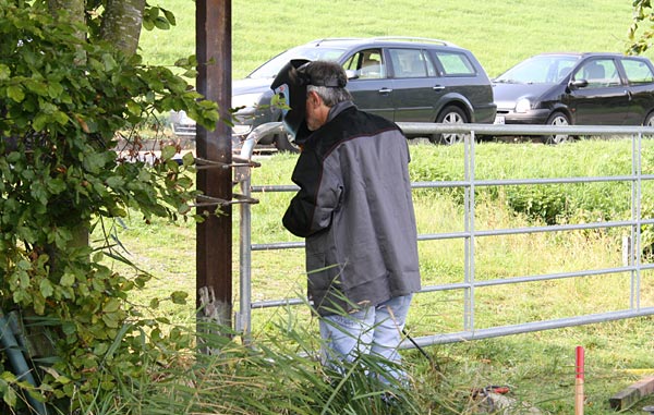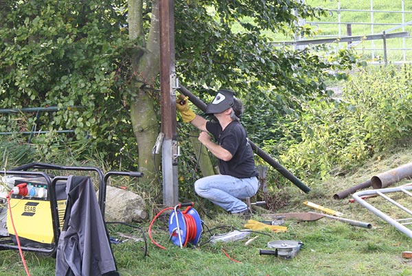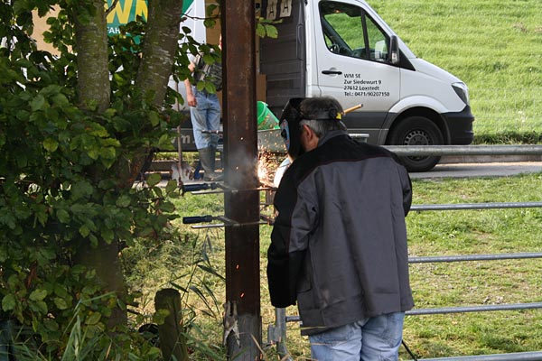 .. während die Leitplanken verschweißt werden kümmert sich Christoph um den Rostschutz ..
