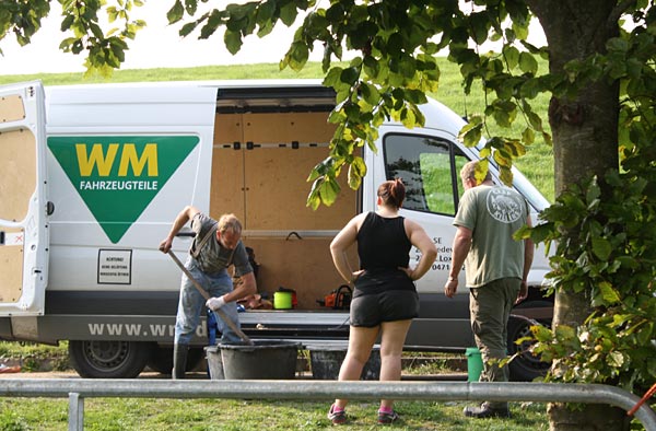 .. Christoph räumt auf .. .. die arbeiten am Tor und am Ufer sind erledigt ..