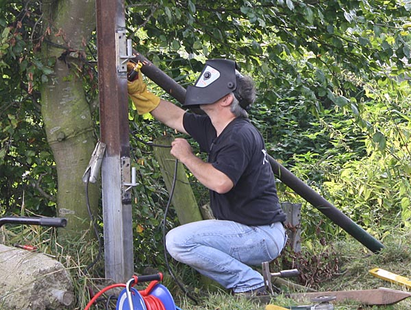 .. Rüdiger schweißt die Hängen an den Träger ..