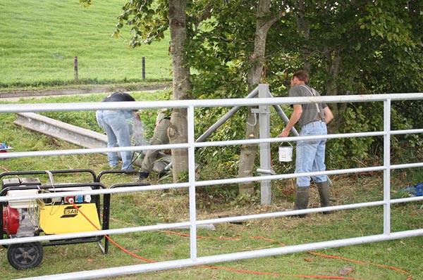 ein anderer Teil buddelte ein Loch und setzte einen neuen Torpfosten