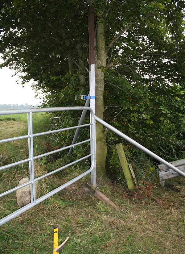 .. Tor in die festgeklemmten Angel setzen, ausrichten, Bewegungsfreiheit prüfen, nachjustieren ..