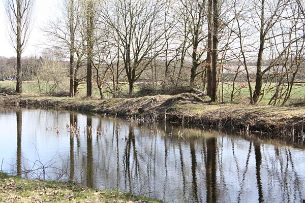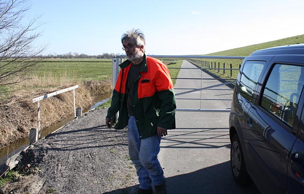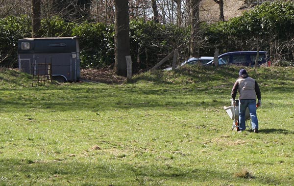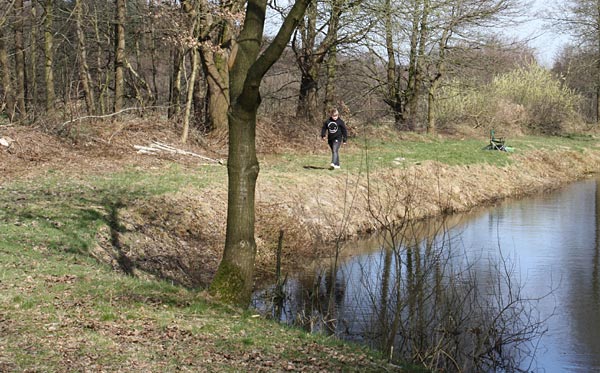 Andreas versucht das Wasserloch in der Wiese zu umgehen..
