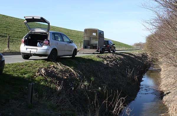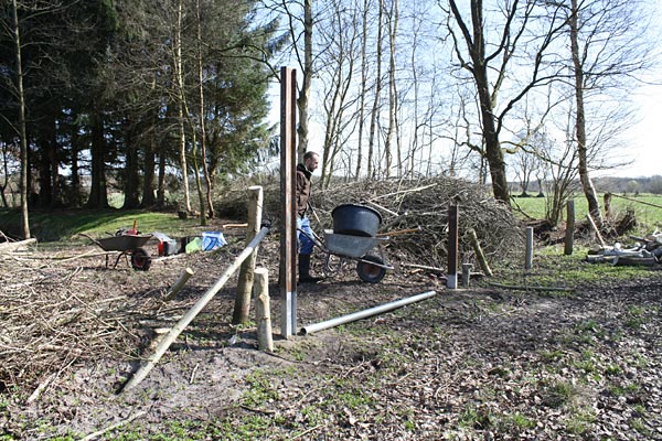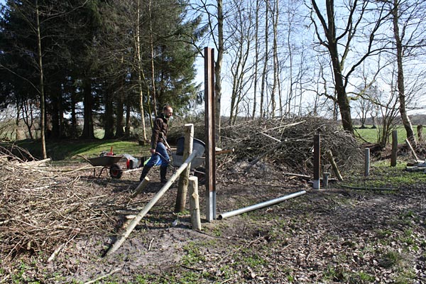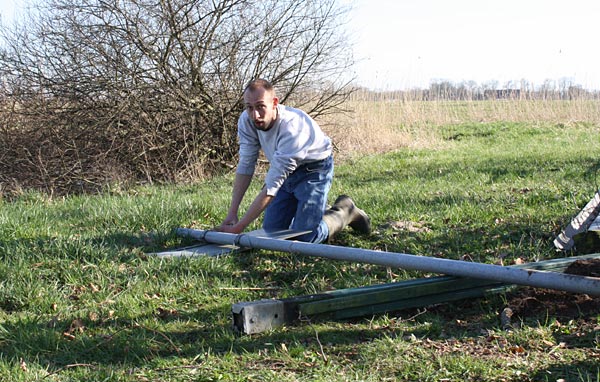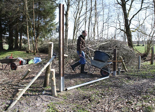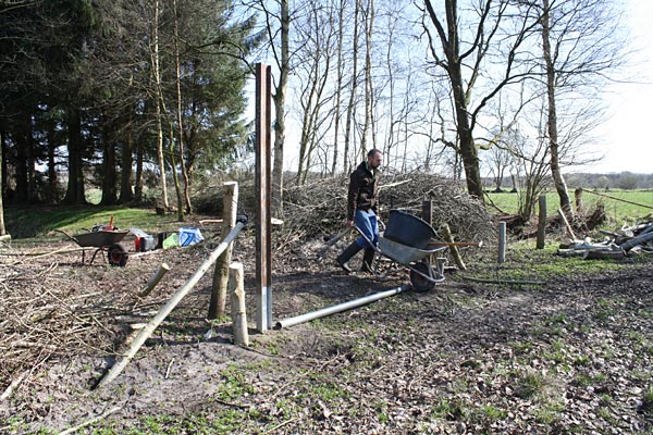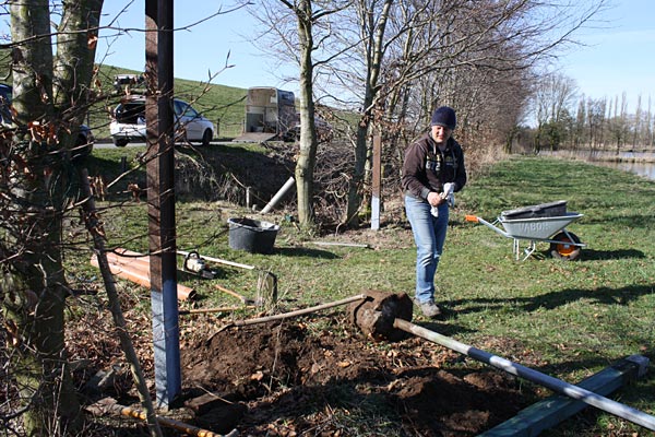 .. gut vorbereitet kam Christof mit dem Anhänger an; die Pfostenträger waren ruck-zuck in den