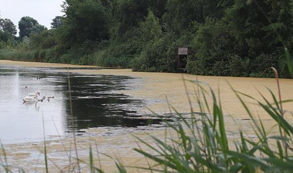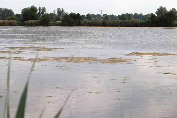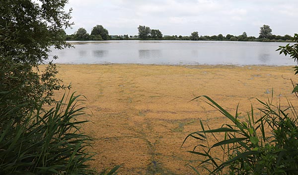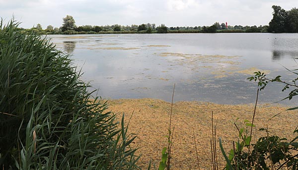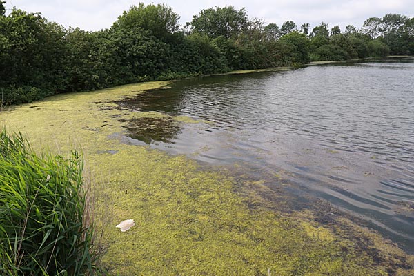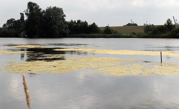 .. im großen Teil des Gewässers macht sich eine Alge breit die