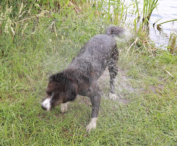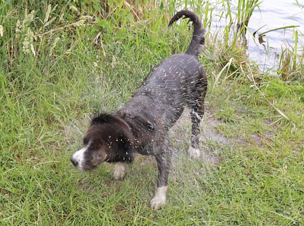 .. Rocco findet Wasser toll, aber wenn Beine und Bauch