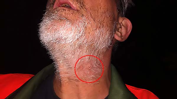 .. eine Hornisse fühlte sich vom Licht der Kopflampe bedroht und stach zu ..