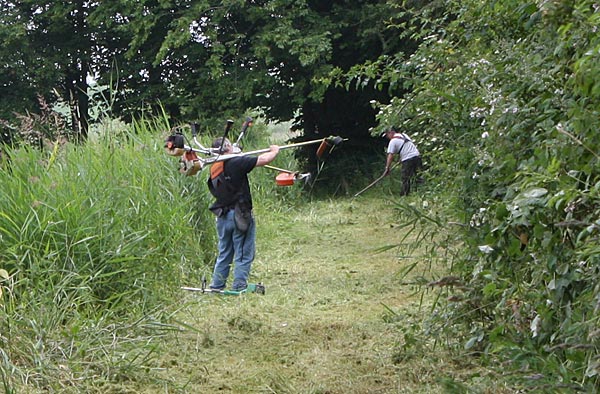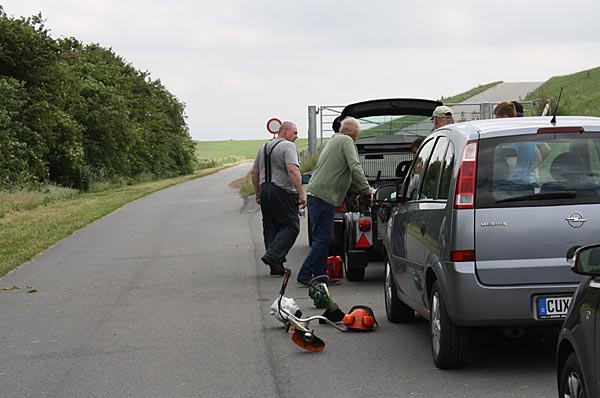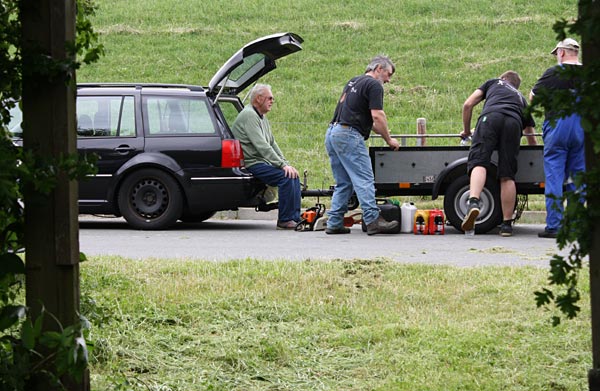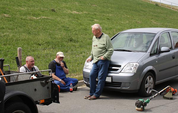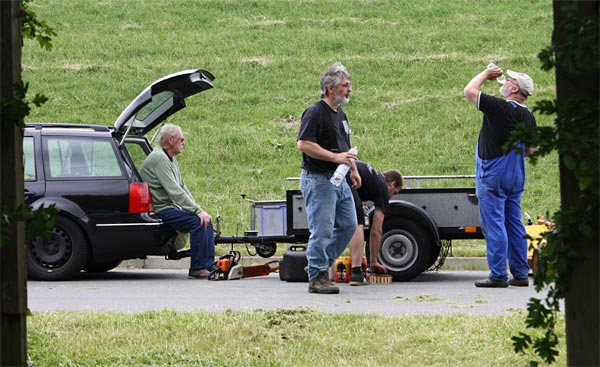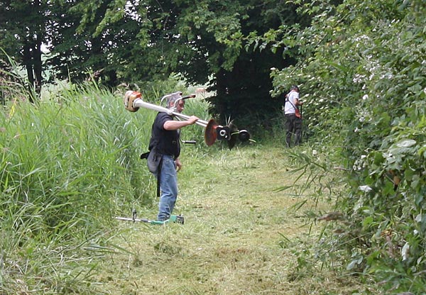 .. rechts Olaf; er kam nach einem Telefonat spontan mit seinem Freischneider