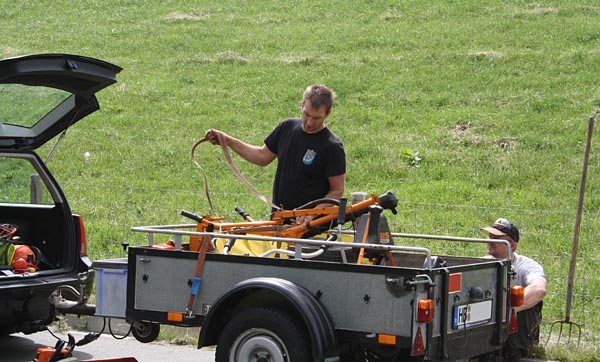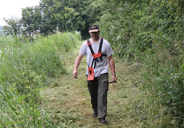 Rolf am eigenen Freischneider, den er zur Unterstützung mitbrachte ..
