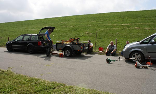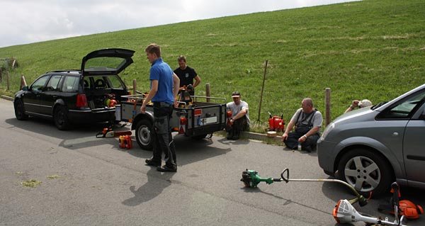 Diesmal hatten wir 5 Freischneide-maschinen, eine Motorsäge