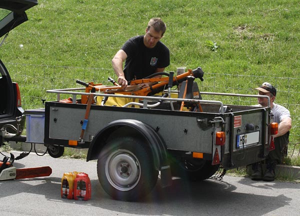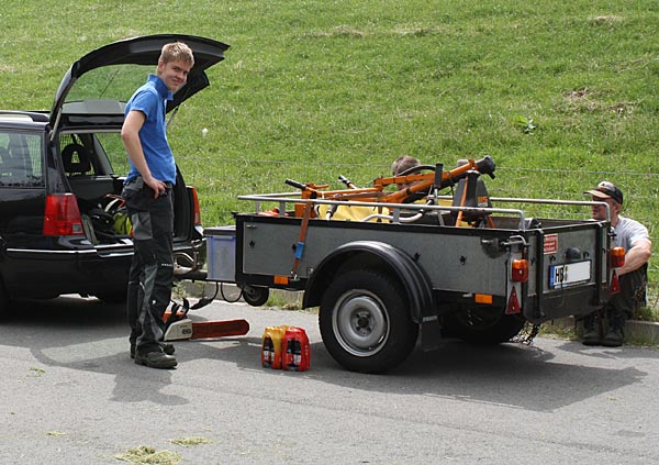 Jan hatte den passenden Anhänger organisiert, damit wir den Maschinenpark transportieren konnten ..
