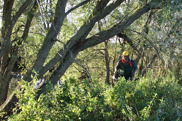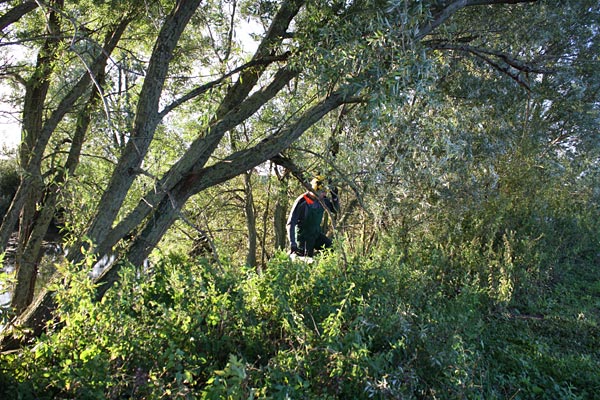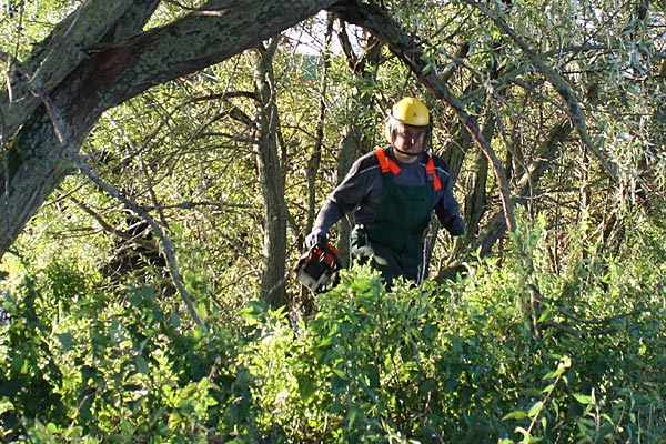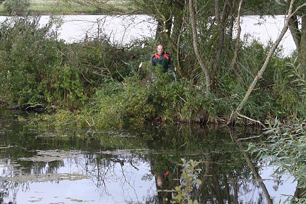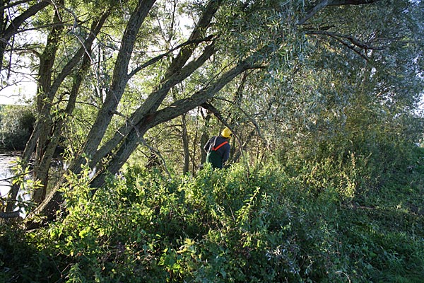 .. das anfallende Buschwerk wird so gelagert, daß es zukünftigt weder bei Arbeiten noch beim Angeln stört ..