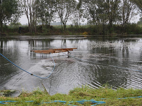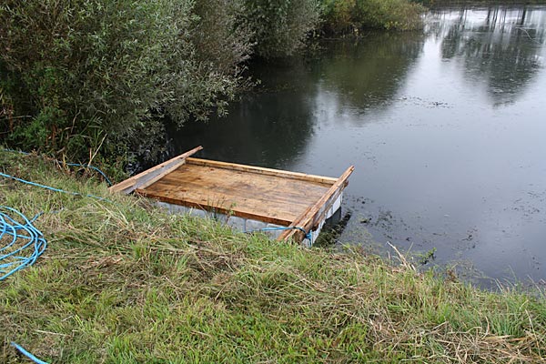 .. nachdem das Floß an der gewünschten Stelle auf dem Wasser ist