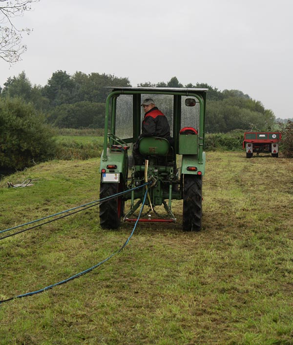 .. dann dient der große Trekker als Positions-Halter und "Umlenkrolle"; der kleine Traktor kann die komplette