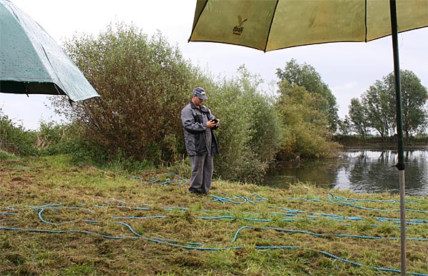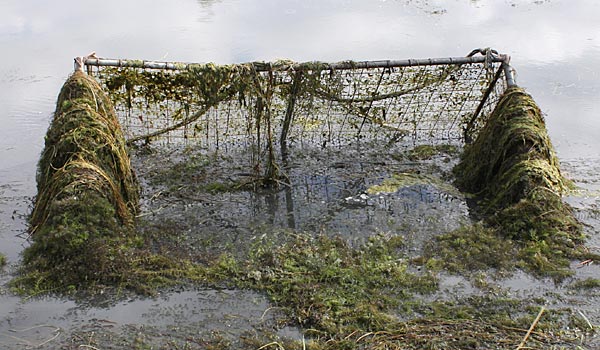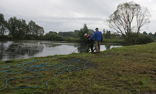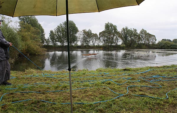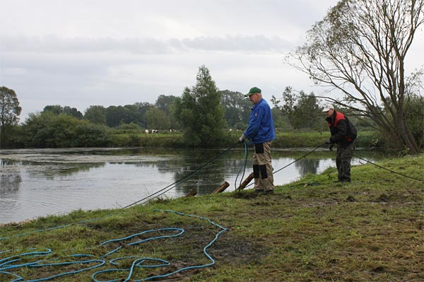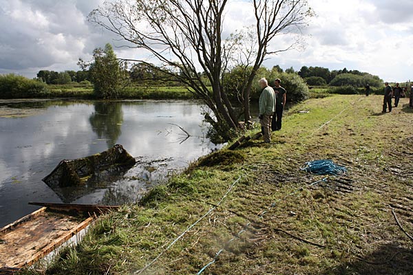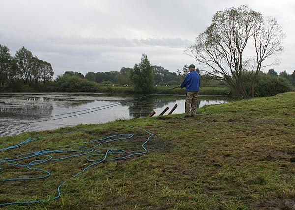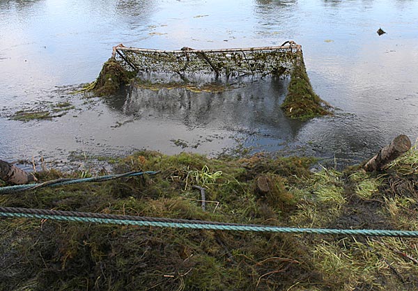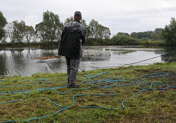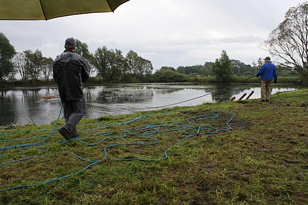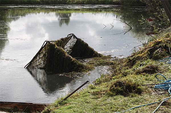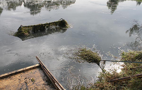 .. die Seile spannen .. *Plumms*, wieder liegt unser Krautfangkäfig auf dem Gewässerboden;