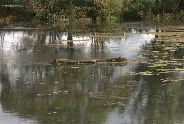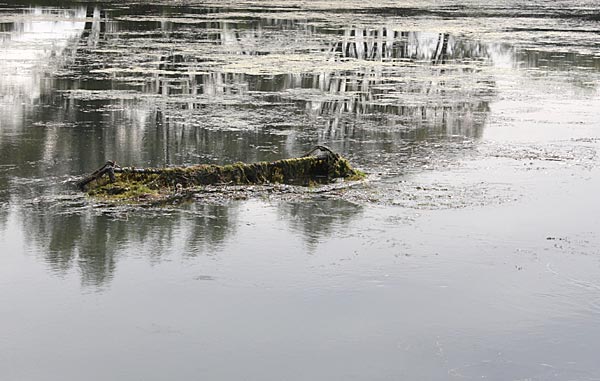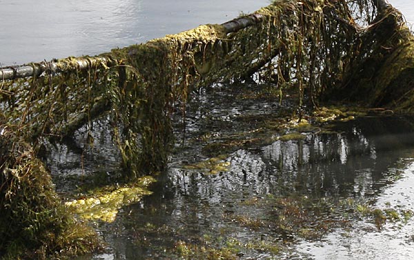 .. dicke Algenplatten hängen auf den Wasserpflanzen; daher kommt auch die gelbe Farbe