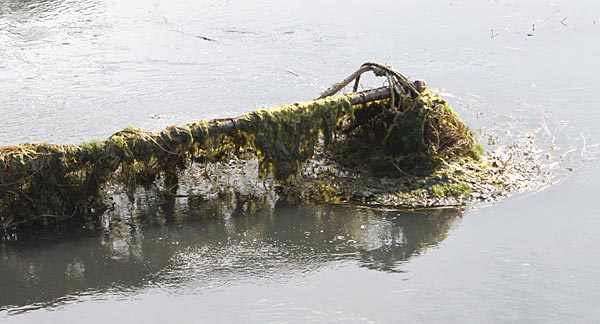 .. die Algen "verbacken" sich mit dem Kraut, das knapp unter der Wasseroberfläche steht ..
