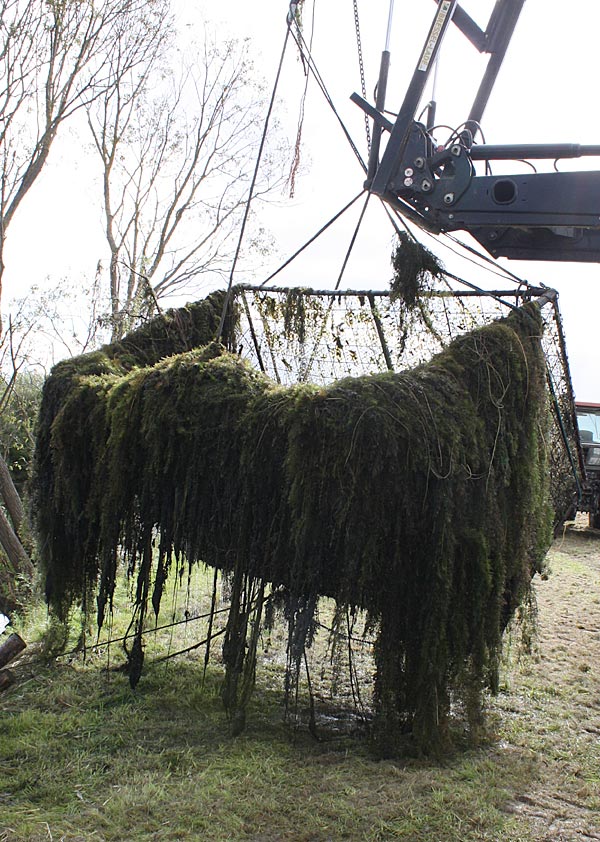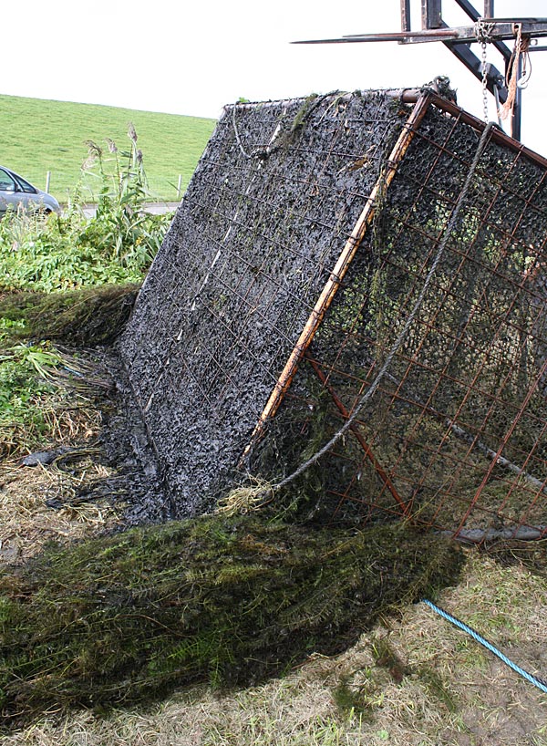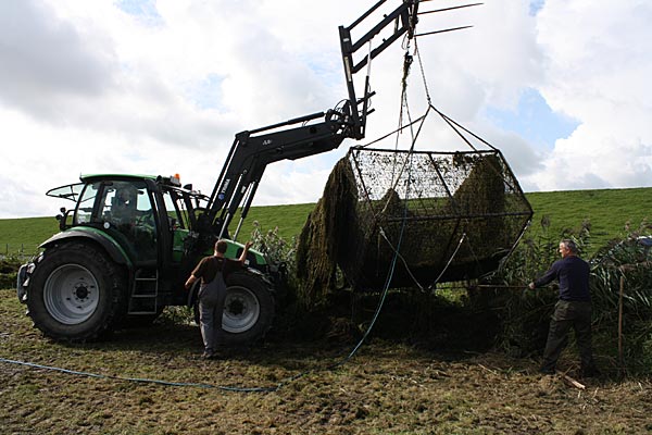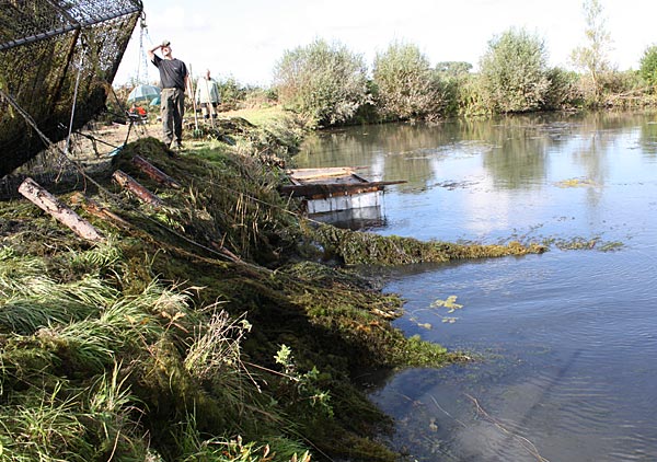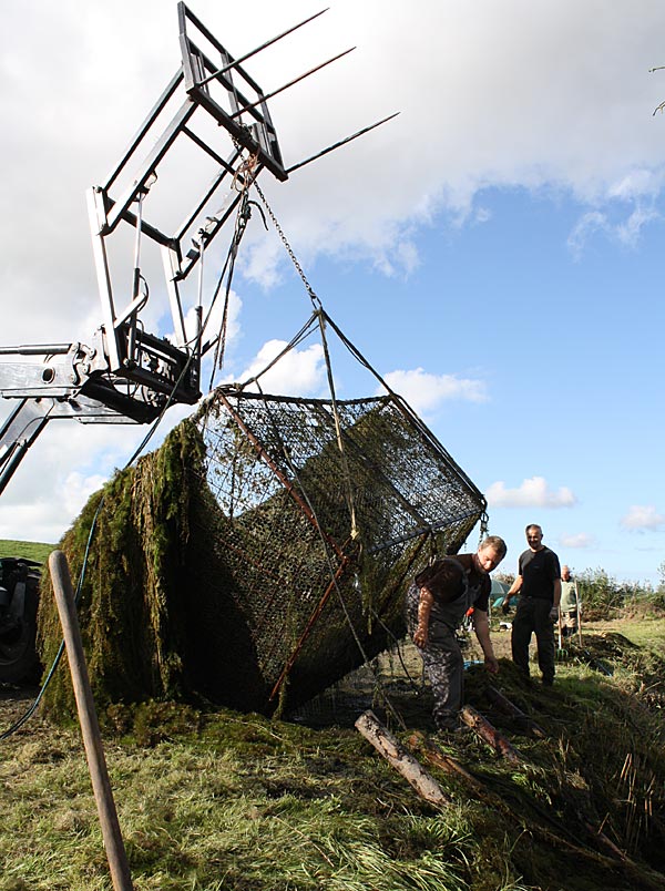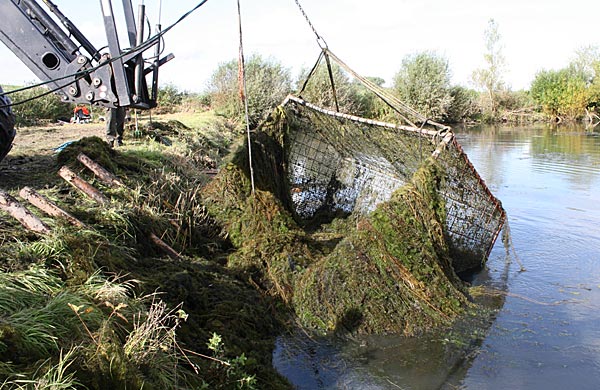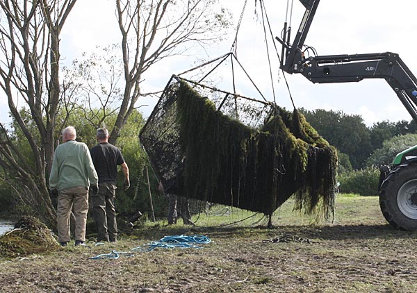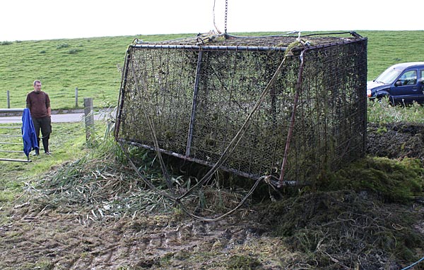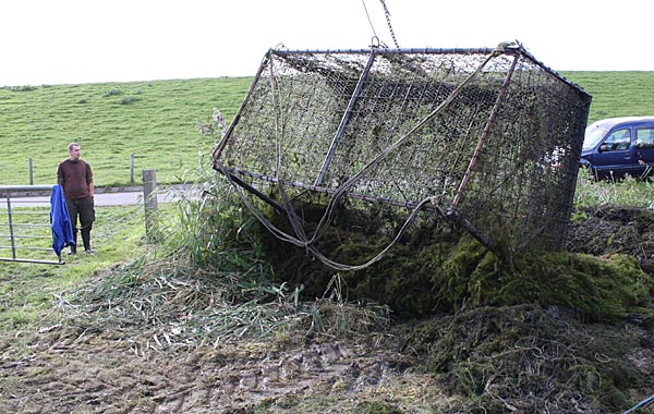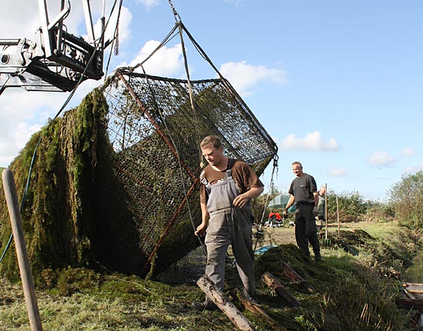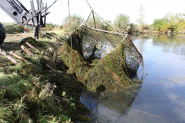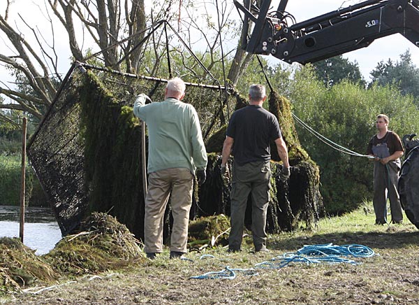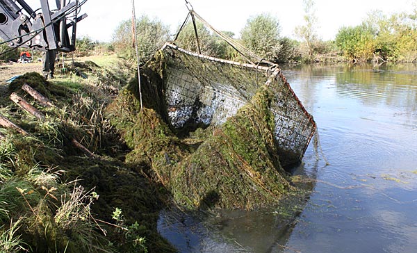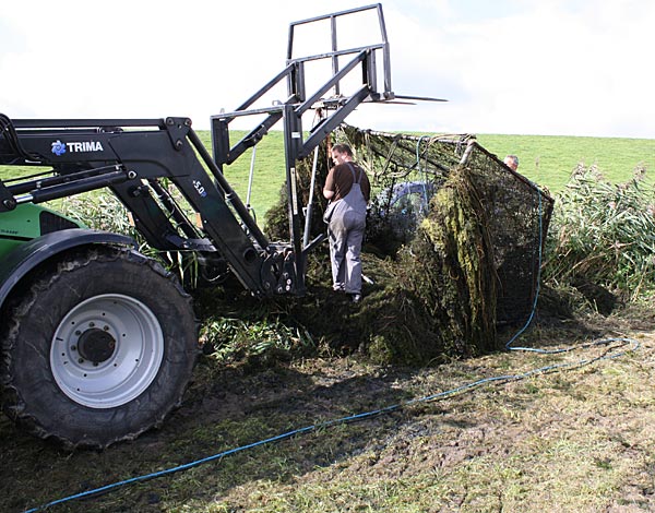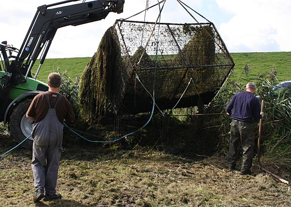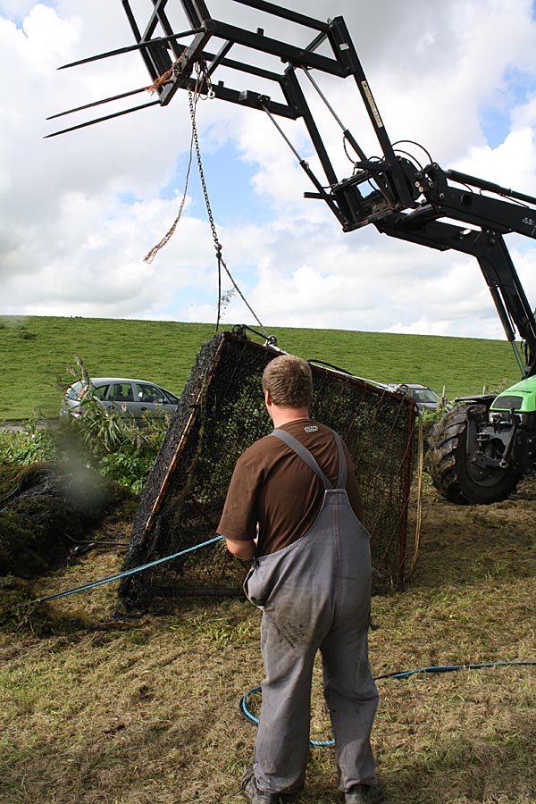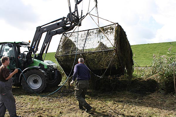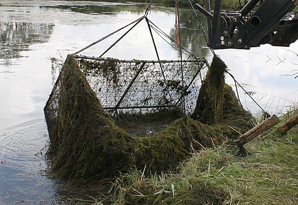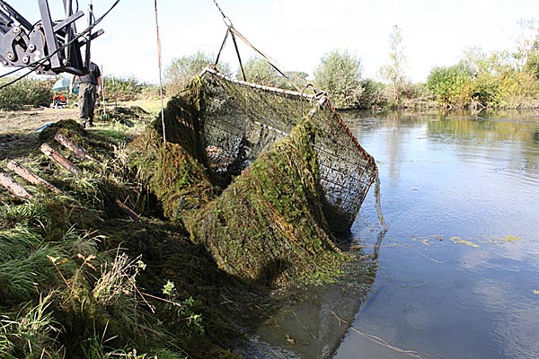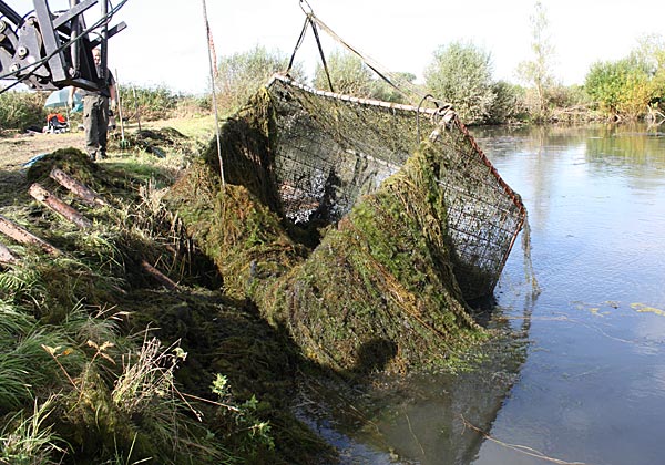 .. und wieder kommt ein gefüllter Käfig an das Entnahmeufer ..