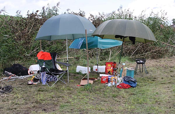 Bootsmotor, Netzstangen und dergl. auf; der Rest wandert ins Auto.