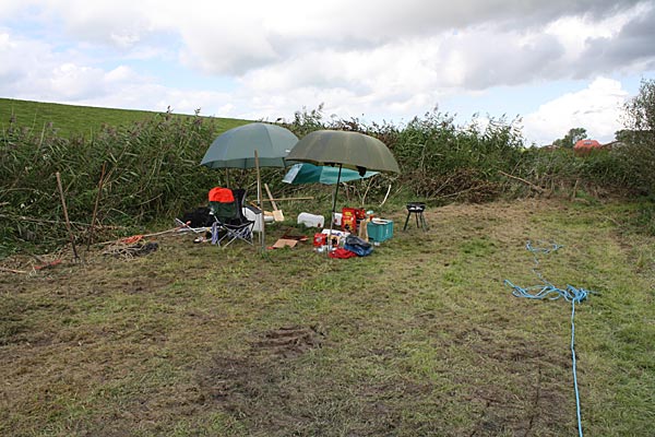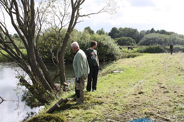 Im Vorfeld haben wir 2 x, jeweils Mittwochs, die Ufer am Teich durchgepflegt und für den Einsatz mit Tauwerk,