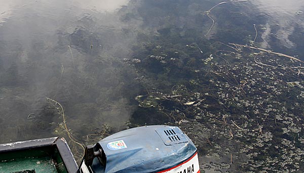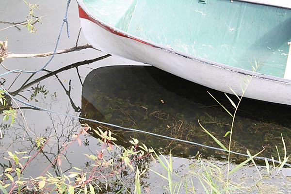 .. um das Boot herum Kraut-Kraut-Kraut; hier konnten wir den Käfig noch nicht durchziehen ..