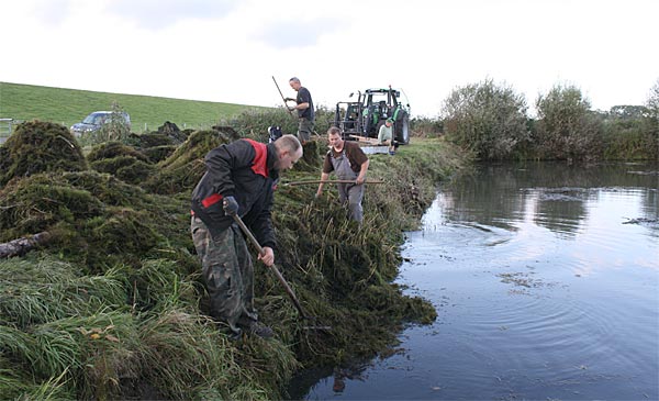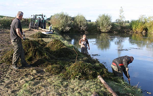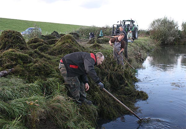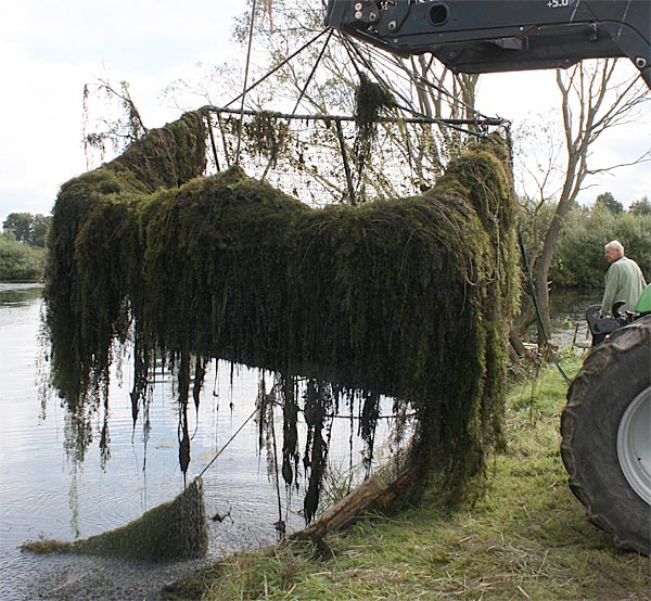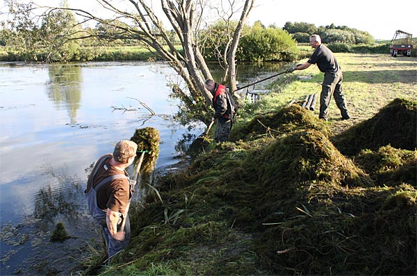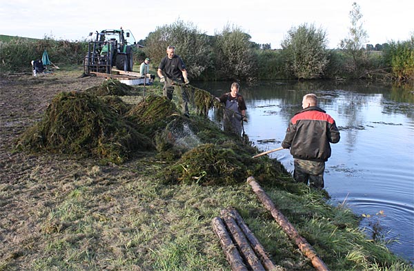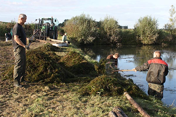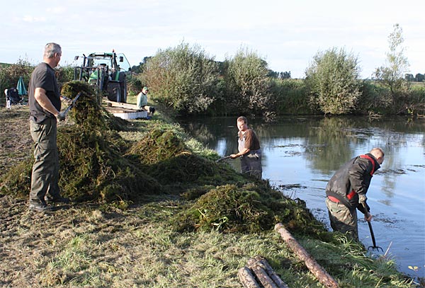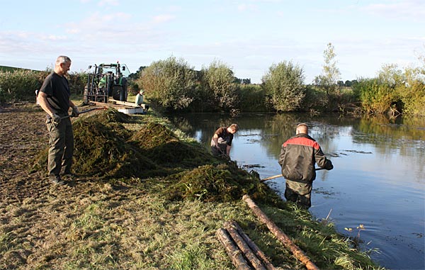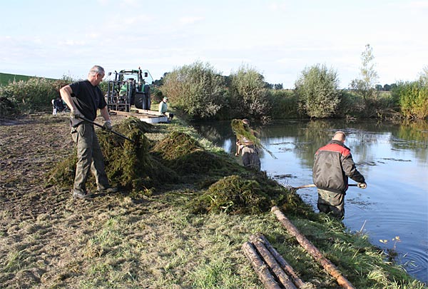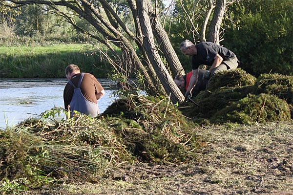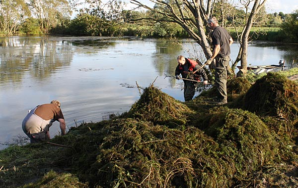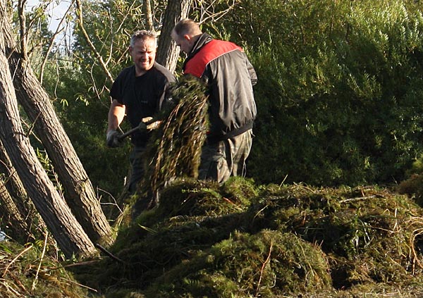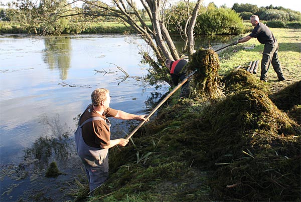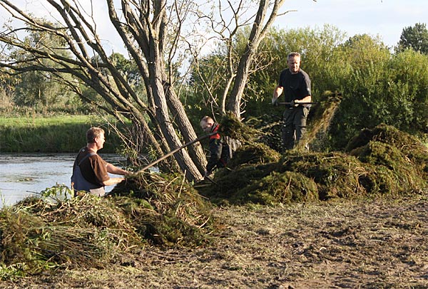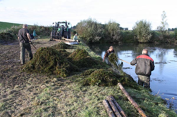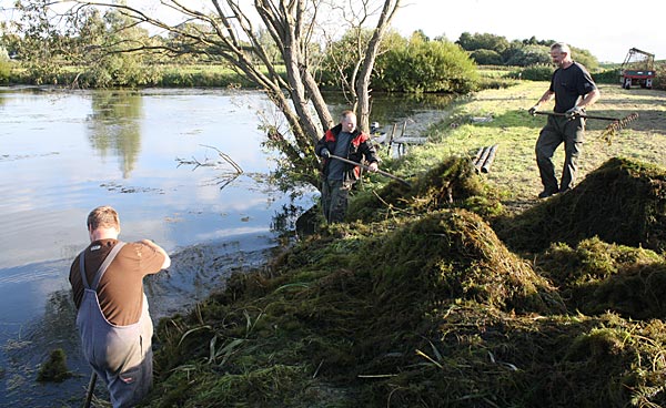 .. nun heisst es alle ans Ufer gezerrten Krautreste 'rauß-harken/ -gabeln ..