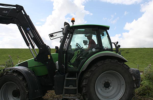 dann die Fahrt zu Diddi nach nebenan; da den Trekker mit "Super-Front-Lader-System" abholen,