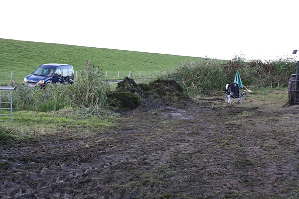Das Tor dort ist offen als Swen ankommt und das Material für den Tag liegt griffbereit