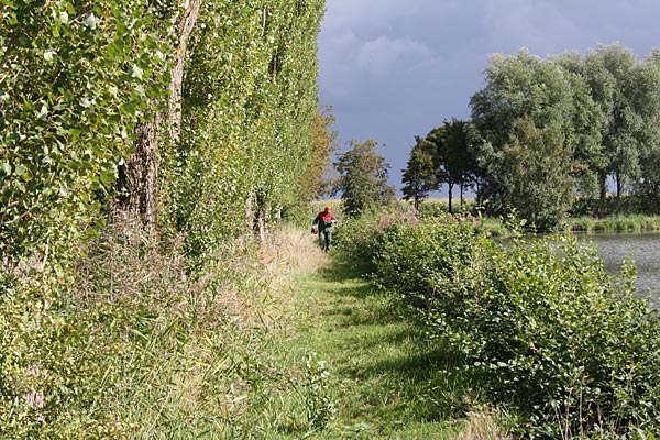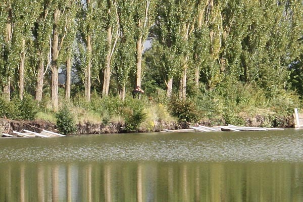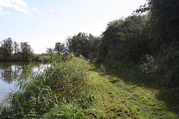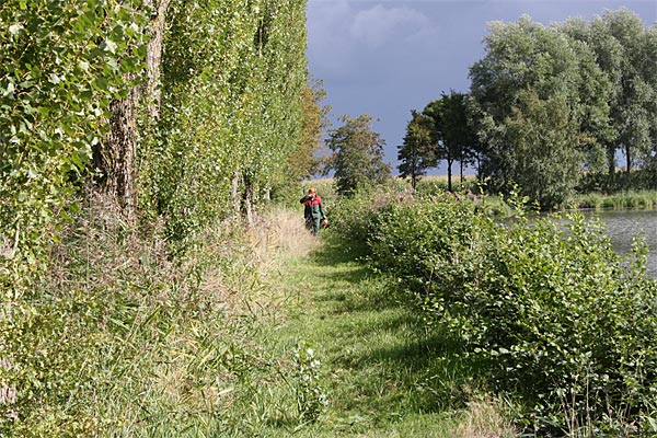 Heiko arbeitet knieend, man kann ihn kaum wahrnehmen vom anderen Ufer aus ..