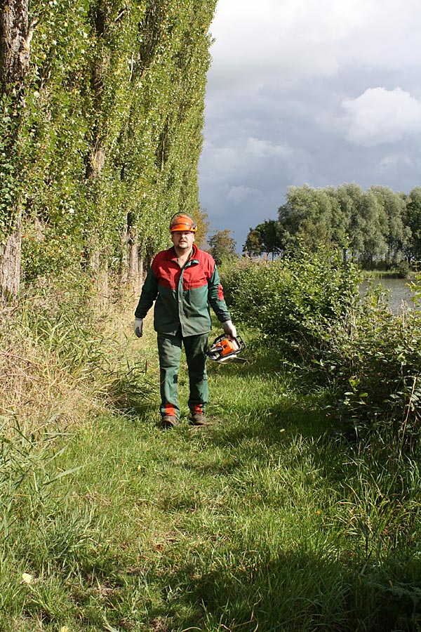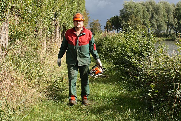 Heiko brachte die Schnittschutzklamotten schon mit und machte sich mit der MS