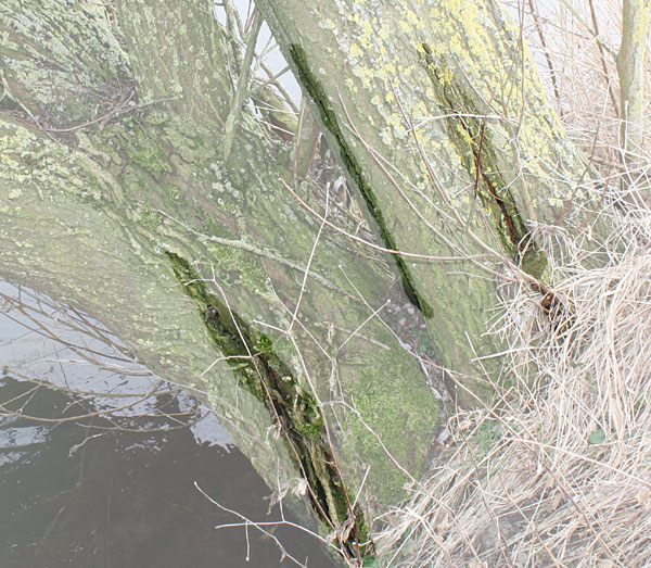 Die Weide war innerlich soweit gespalten, dass der vorderen Teil überhaupt keinen Kontakt mehr zu den Wurzeln hatte.