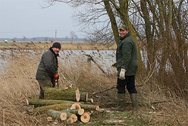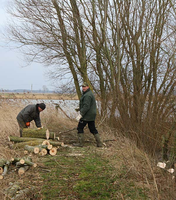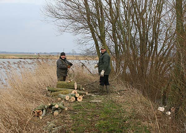 Meik und Lars mühen sich mit den Resten der Weiden.