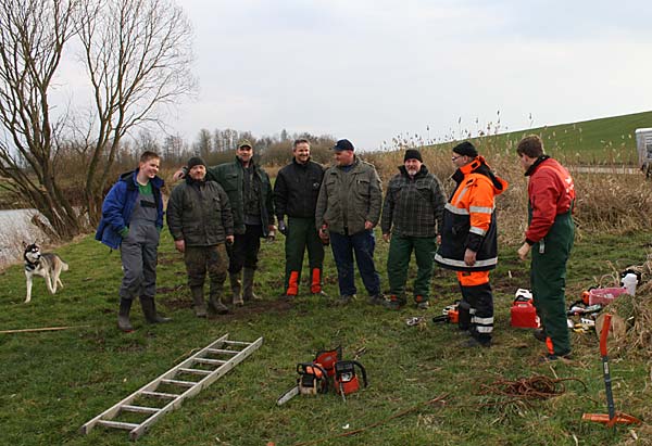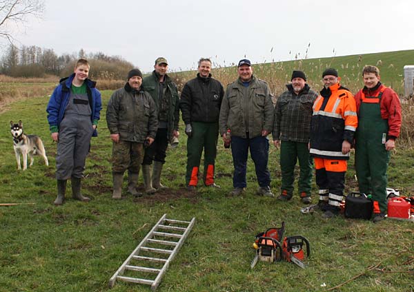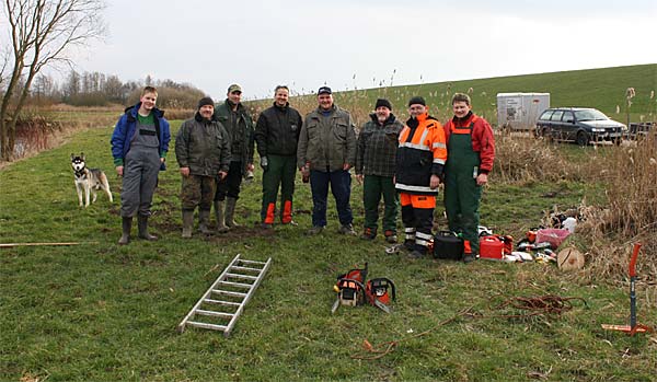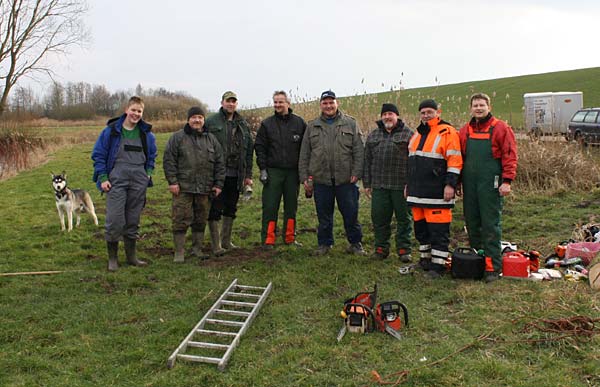 Nils, Meik, Lars, Ulf, Sebastian, Rolf, Uwe, Andy, links außen Husky Aki und hinter der Knipskiste Rüdiger.