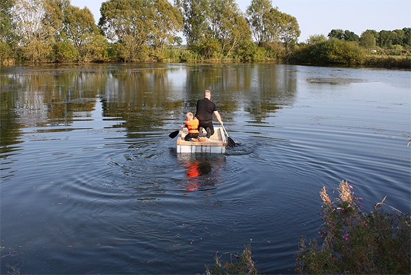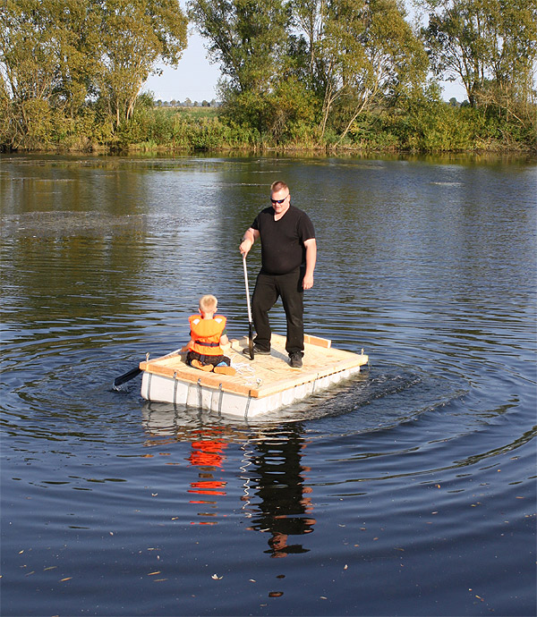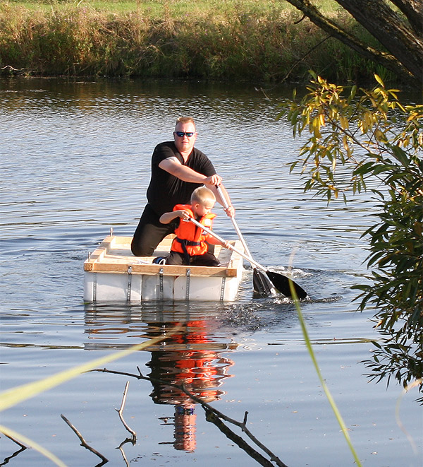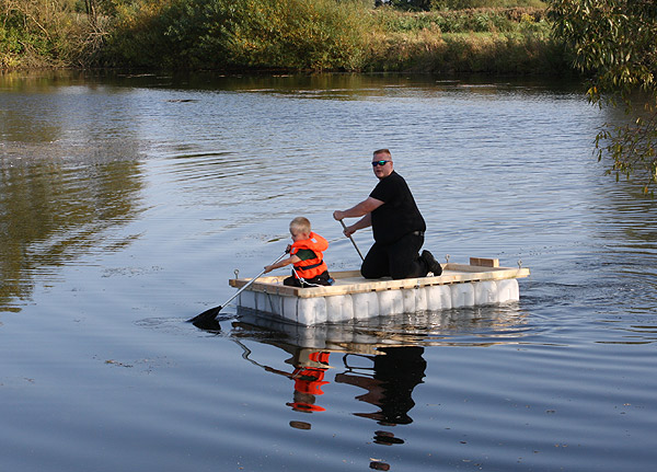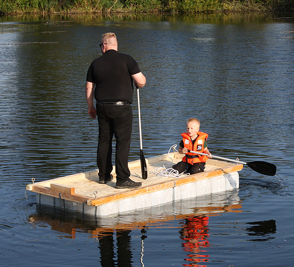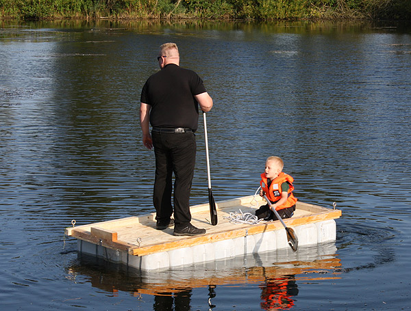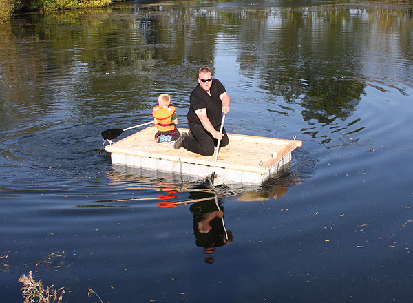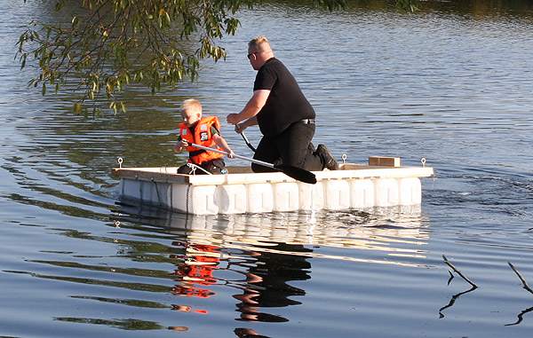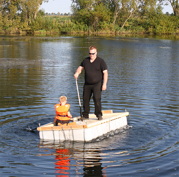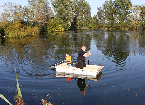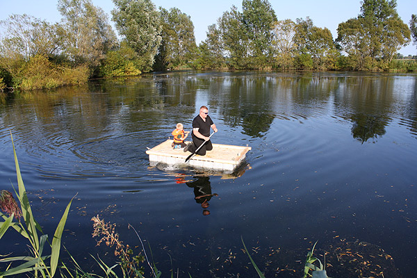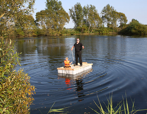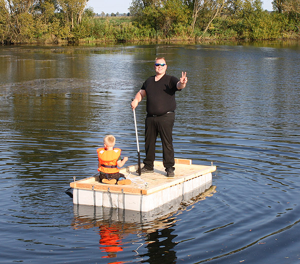 Jan Renken hatte ein Floß gebaut und das musste auf Tragfähigkeit getestet werden ..