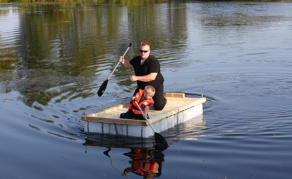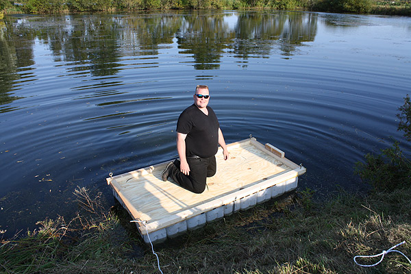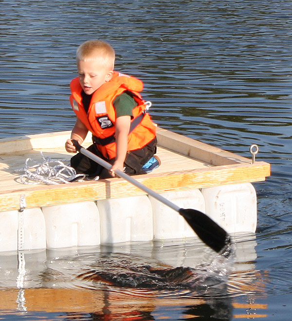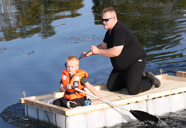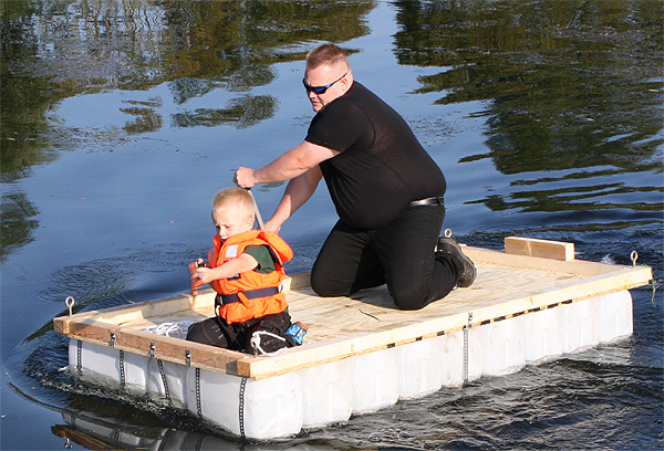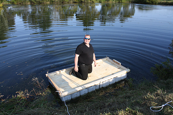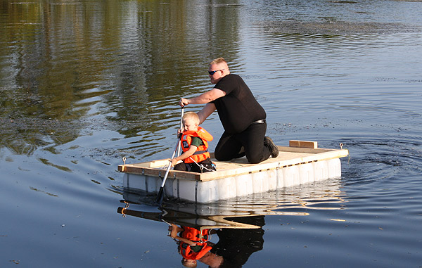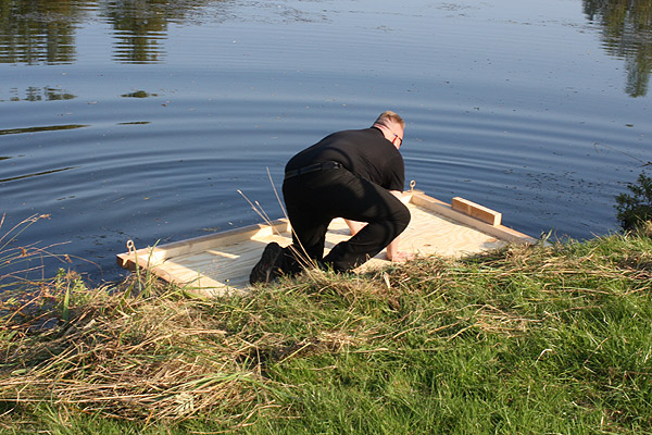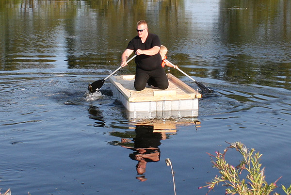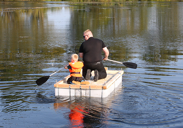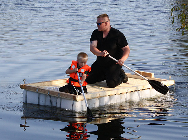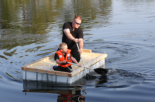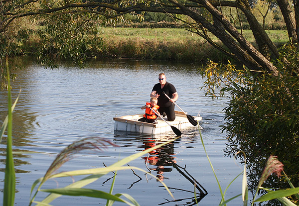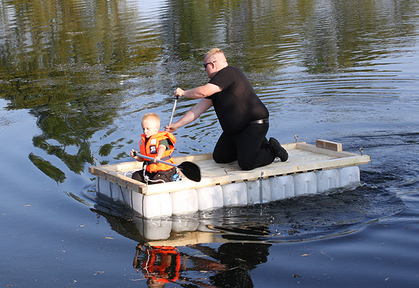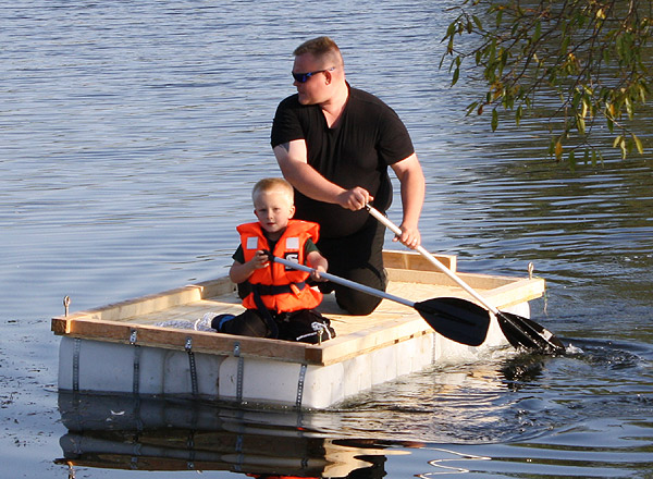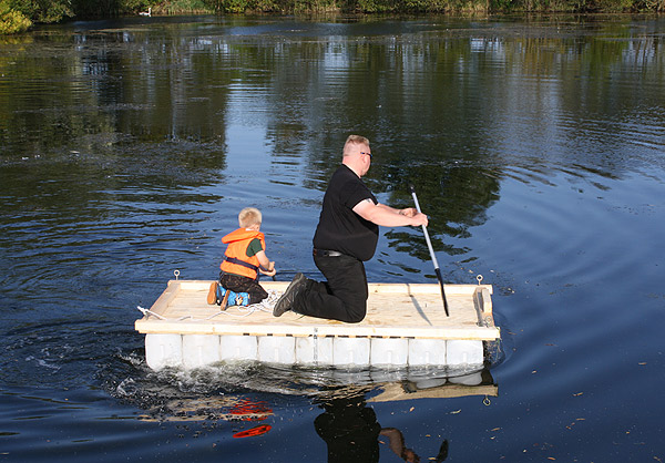 Jan Renken hatte ein Floß gebaut und das musste auf Tragfähigkeit getestet werden ..