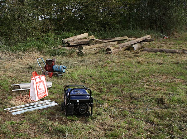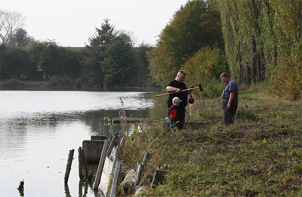 Desweiteren sollten die restlichen Holzpfähle für die Faschinen eingerammt werden.