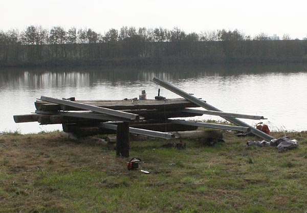 > die restlichen Pfähle sind eingerammt; die Faschinen dazu wurden eingesetzt.