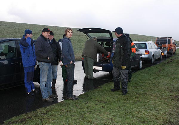 Teilnehmern am Uferstreifen entlang und erklärte Ziel und Umfang des Einsatzes.