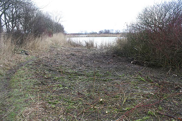 Hier haben wir nur die Option, mit zwei freigeräumten Uferstellen auf der Deichseite (links) Platz für das