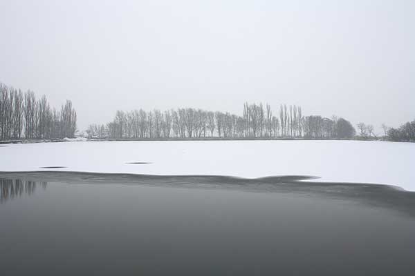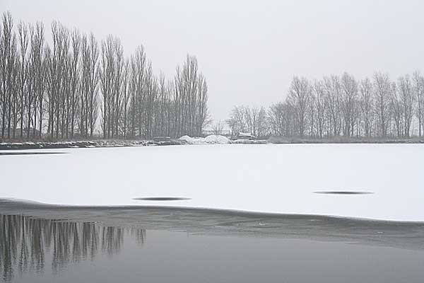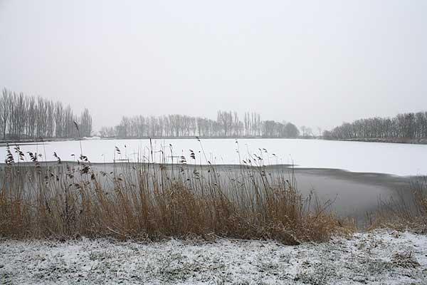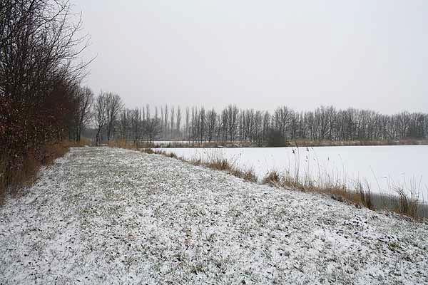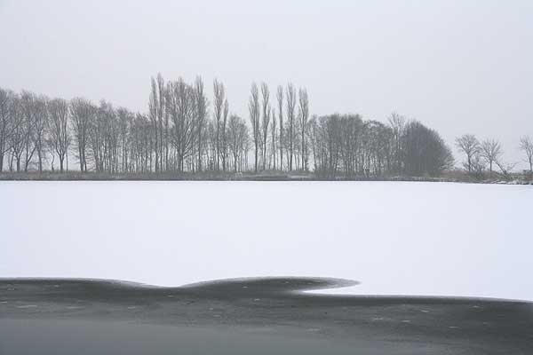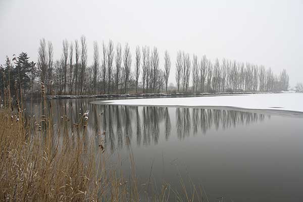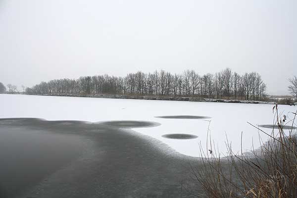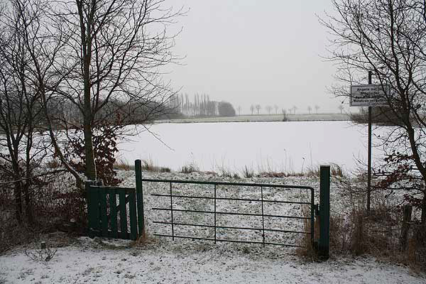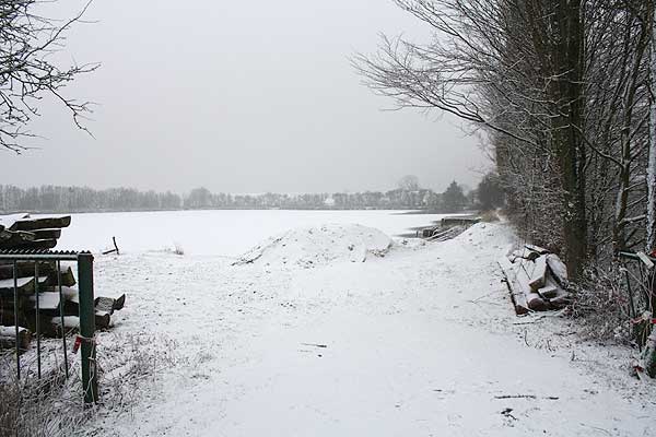 .. bis auf 2 kleine Stellen ist der Aalteich voller Eis und Schnee ..
