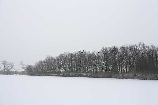 .. im oberen Teil der Hainbuchen haben sich einige Krähenvögel niedergelassen..