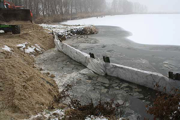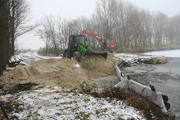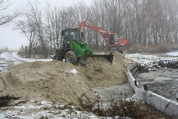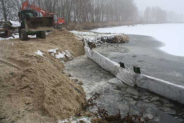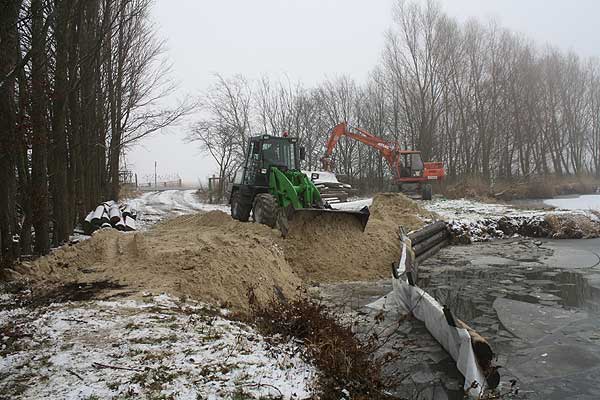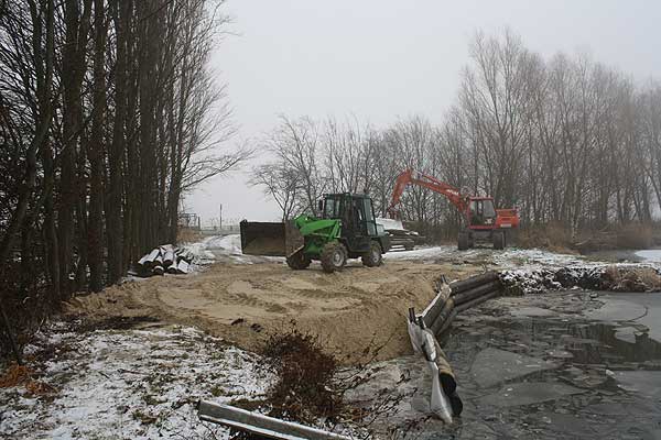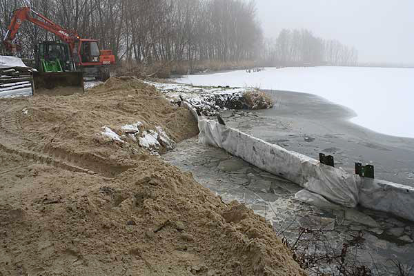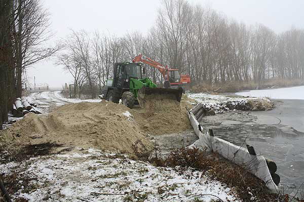 .. der Zwischenraum zwischen Ufer und Schutzwall wird "befahrbar" angefüllt.