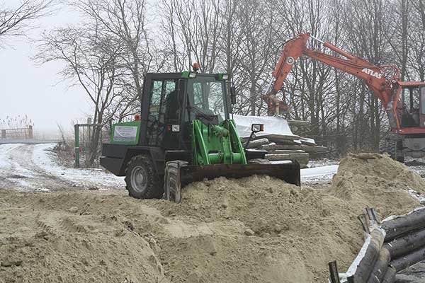.. während Radlader und Bagger noch auf dem Weg zur Baustelle sind