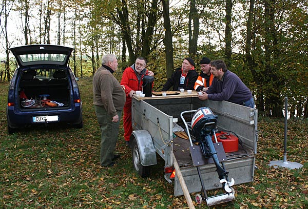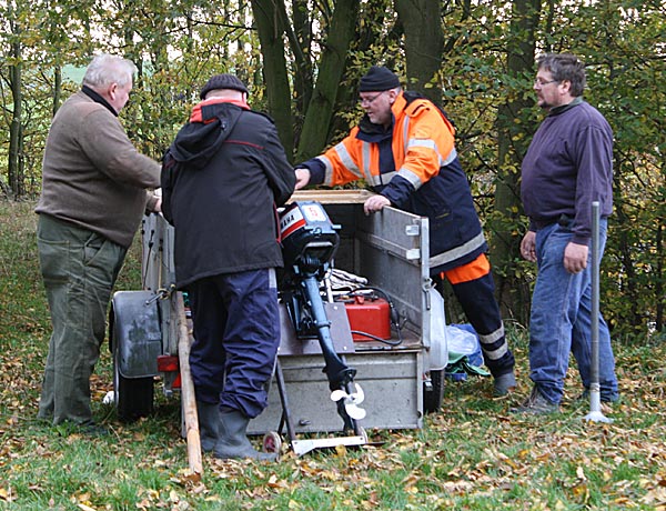 Heiko, Uwe und Arnim kümmern sich um das Boot und das Zubehör.